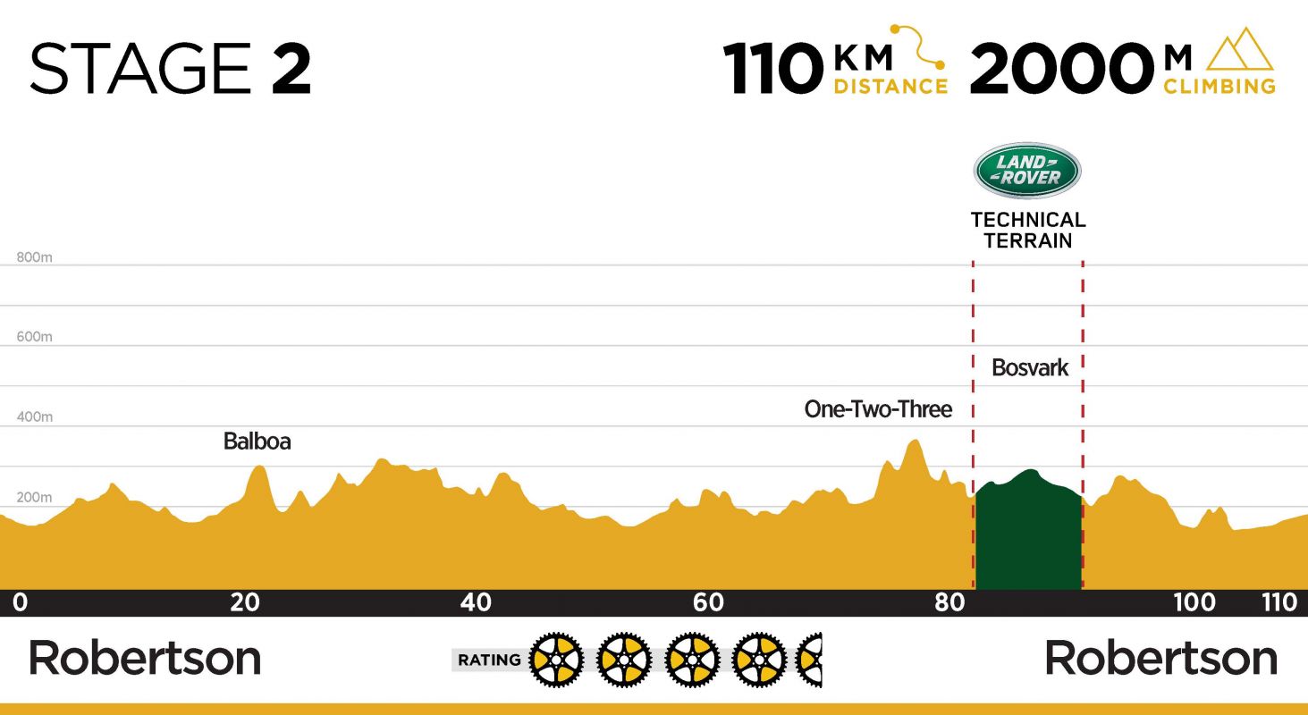 This will be like a 10-round world championship boxing match, with a series of climbs that will throw jabs and uppercuts at the riders all day. Learn the names of these bumps, because you’ll remember them well. The Balboa, the Cow Climb, Kat se Pad, Kat de Stert, Neil’s Folly, One-Two-Three Combo, Suckerpunch Climb and, when you think it is all over, the Counter Punch Climb. There will be some fun with the 10km Bosvark singletrack swoop after 82km, which for many will be the highlight of the day. Keep something in reserve for the last 40km.