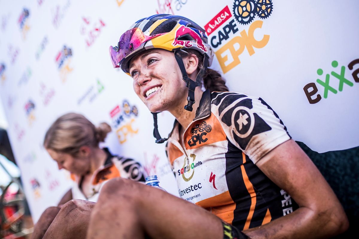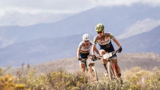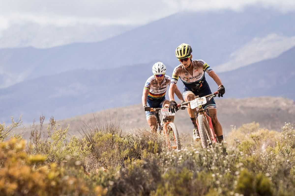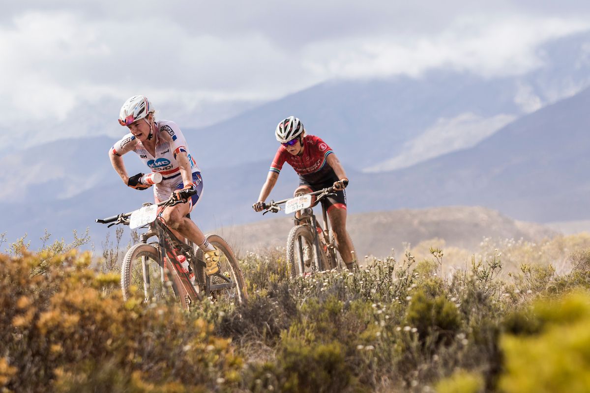Multiple World Champion Annika Langvad and her young American partner Kate Courtney overcame a puncture to surge to a second successive victory in the Women’s category on Stage 1 of the Absa Cape Epic on Monday.