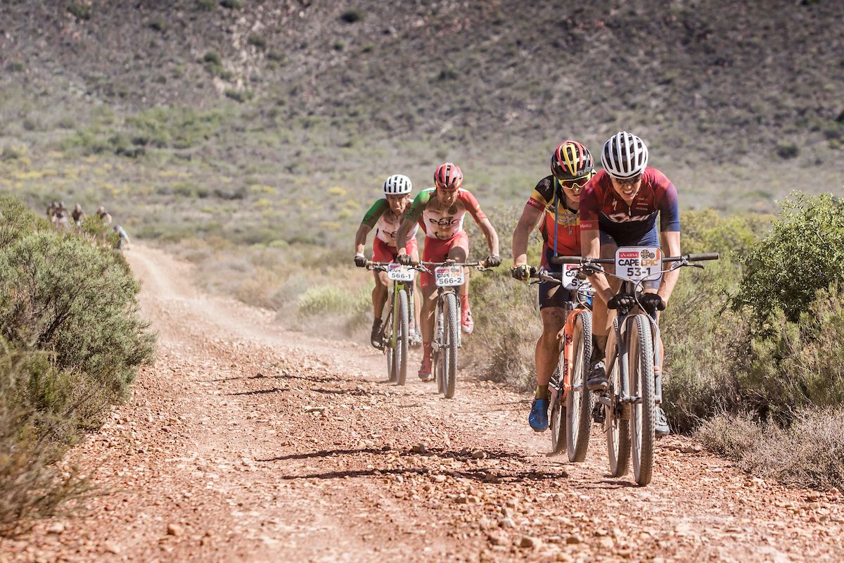 The dormakaba team of Candice Lill and Amy Beth McDougall are lying fifth overall with a big lead in the inaugural Absa African Women’s special jersey race. Currently lying second, about 36-minutes behind in that category are Western Girls’ Nadia Visser and Katie Lennard, while Nolands Spar Ladies team of 14-time finisher Hannele Steyn and Jeannie Dreyer are third.