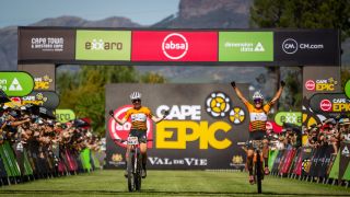 Despite dropping behind Faces Rola with 10km to go, NinetyOne-songo-Specialized's overall lead was never in danger. Faces Rola crossed the line, and four minutes later Batten and Villafane arrived, waving at the crowd as they cruised down the final Absa Cape Epic finish line for the last time in 2022.