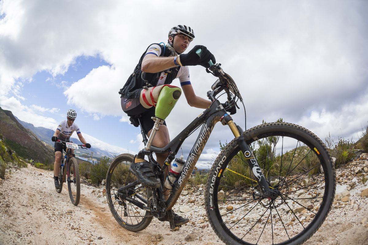 Amputee Reuben van Niekerk, riding with a prosthetic limb after losing his leg in a motorbike accident in 2008, is attempting his third finish to join the Amabubesi Club and also said it was a “lekker” ride and he was feeling strong. “It was a bit windy but we had a jol,” he said.